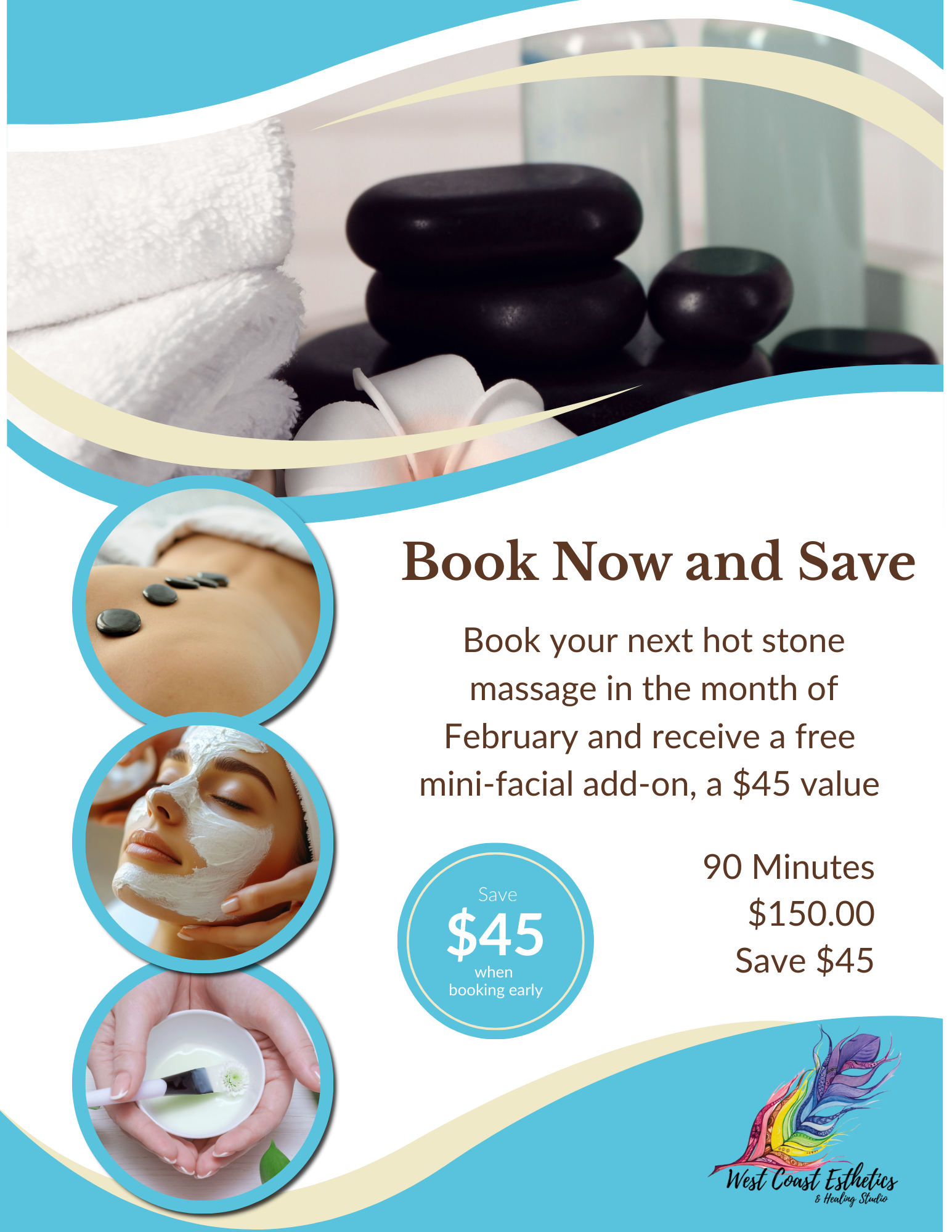 When you book a 90-minute Hot Stone Massage, you will receive a complimentary mini facial, a $45 value, included with your session.